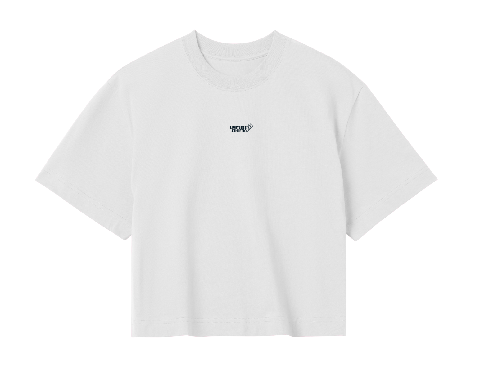 The Basics Cropped Top with a boxy cut, cropped just below the navel, suitable for both sports and casual wear.